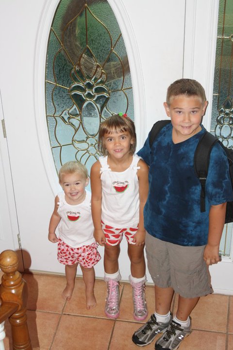 Dropping Isaac and Sophie off at the bus stop for their last day: